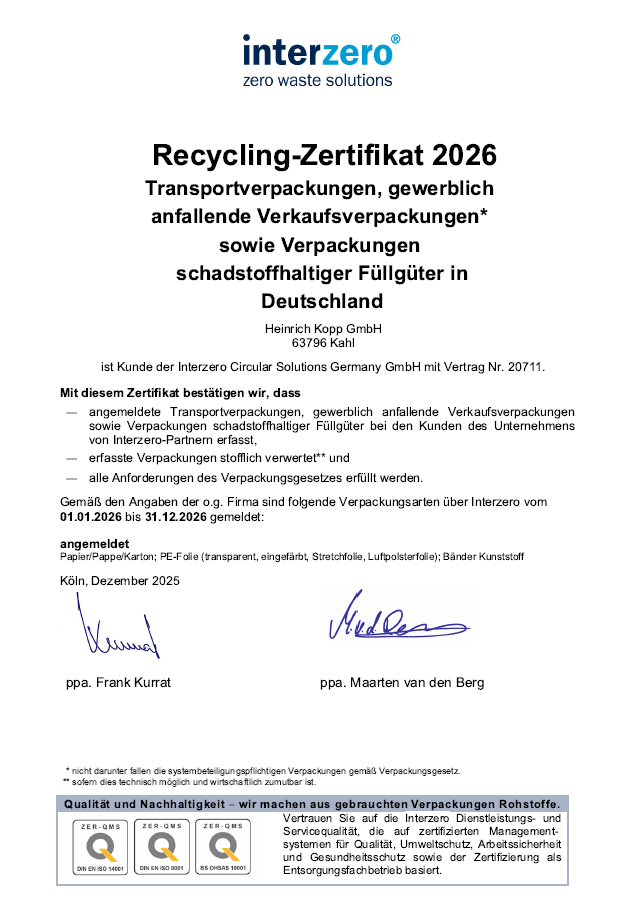 Für den Geschäftsverkehr zwischen den Lieferanten und Kopp gelten ausschließlich die allgemeinen Einkaufsbedingungen. Diese können als PDF-Datei herunter geladen werden.